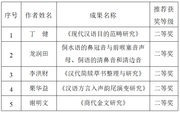 第二十二届中国社会科学院吕叔湘语言学奖推荐获奖成果公示