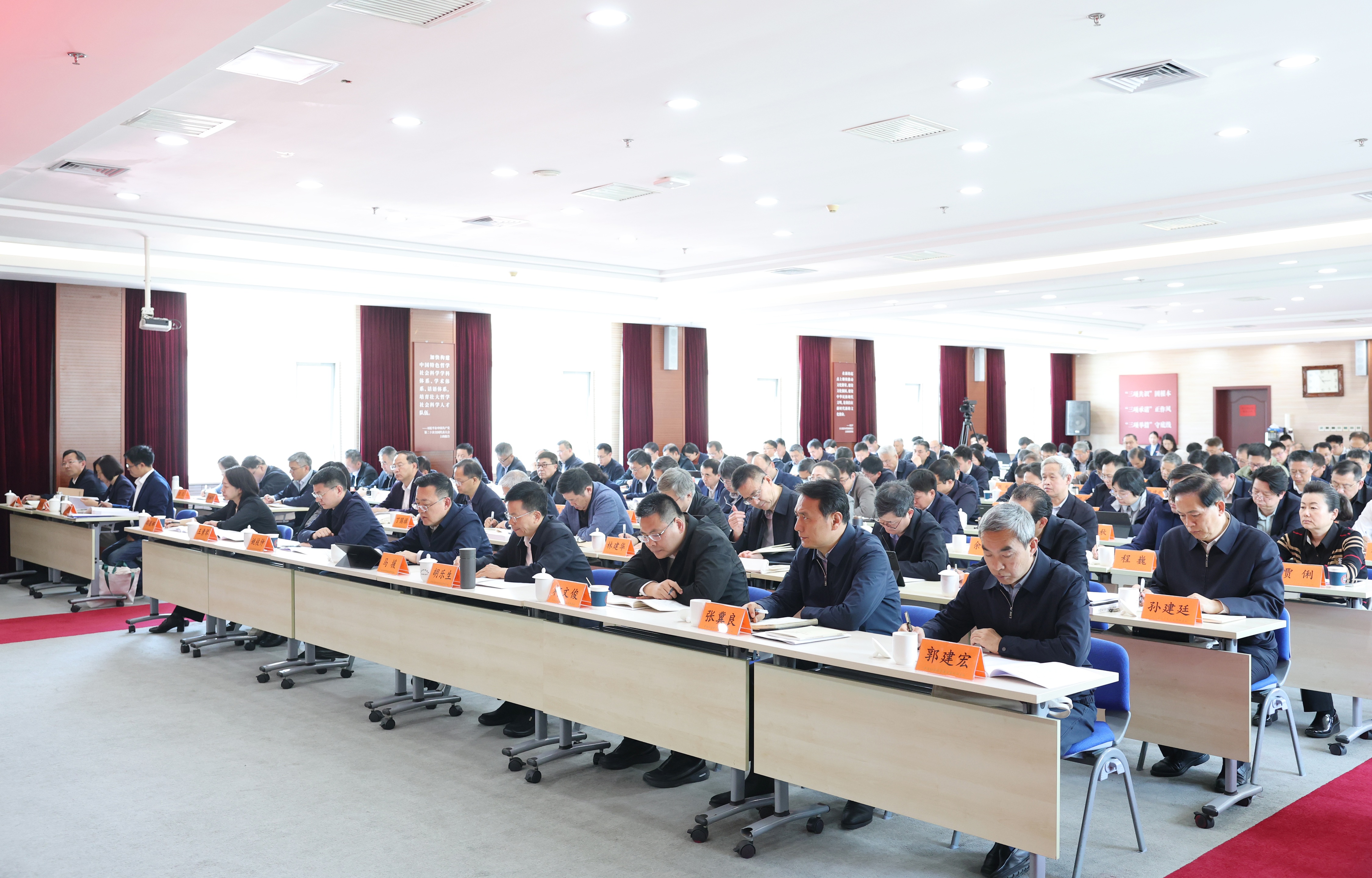 会议强调,中国社会科学院是以科研为中心工作的政治机关。院属各单位必须旗帜鲜明讲政治,坚持不懈用习近平新时代中国特色社会主义思想凝心铸魂,坚定拥护“两个确立”,坚决做到“两个维护”,始终同以习近平同志为核心的党中央保持高度一致。要严格落实“第一议题”制度,持续加强党的创新理论武装,持续巩固以“三项共识”固根本、“三项承诺”正作风、“三项举措”守底线的政治建设新格局。要坚持做人做事做学问相统一,力戒形式主义、官僚主义,正确处理潜绩和显绩的关系,坚持严格管理和关心关爱相结合,高标准高质量开展学习教育,以严实举措纠治政绩观偏差。要以正确政绩观把全院党员干部学者凝聚起来,全心全意服务党和国家工作大局,为人民述学立论,做有思想、有情怀、有风骨、能引领未来的学问,切实把学习成效转化为推动全院各项工作高质量发展的实际行动。