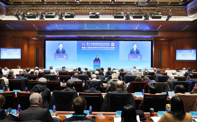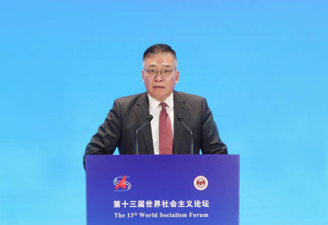 中国社会科学网讯(记者高莹)11月28—29日,第十三届世界社会主义论坛在北京召开。论坛主题为“构建人类命运共同体与世界社会主义发展”。中国社会科学院院长、党组书记高翔出席开幕式并作主旨演讲。中共中央对外联络部副部长郭业洲,西班牙共产党主席、欧洲左翼党副主席何塞·路易斯·森特利亚,中国社会科学院原副院长、世界社会主义研究中心主任李慎明,俄中友协副会长,中俄友好、和平与发展委员会专家理事会俄方主席尤里·塔夫罗夫斯基作开幕式主题发言。中国社会科学院副院长、党组成员王昌林主持开幕式。