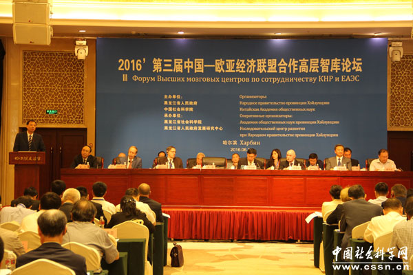 中国社会科学网讯(记者赵徐州 曾江)6月14日,由中国社会科学院、黑龙江省人民政府联合主办,黑龙江省社会科学院、黑龙江省人民政府发展研究中心承办的“第三届中国与欧亚经济联盟合作高层智库论坛”在哈尔滨召开。来自中国与俄罗斯、白俄罗斯、哈萨克斯坦、吉尔吉斯斯坦和亚美尼亚等欧亚经济联盟五国的80多位专家、学者、政府官员和企业界人士参加了此次论坛。