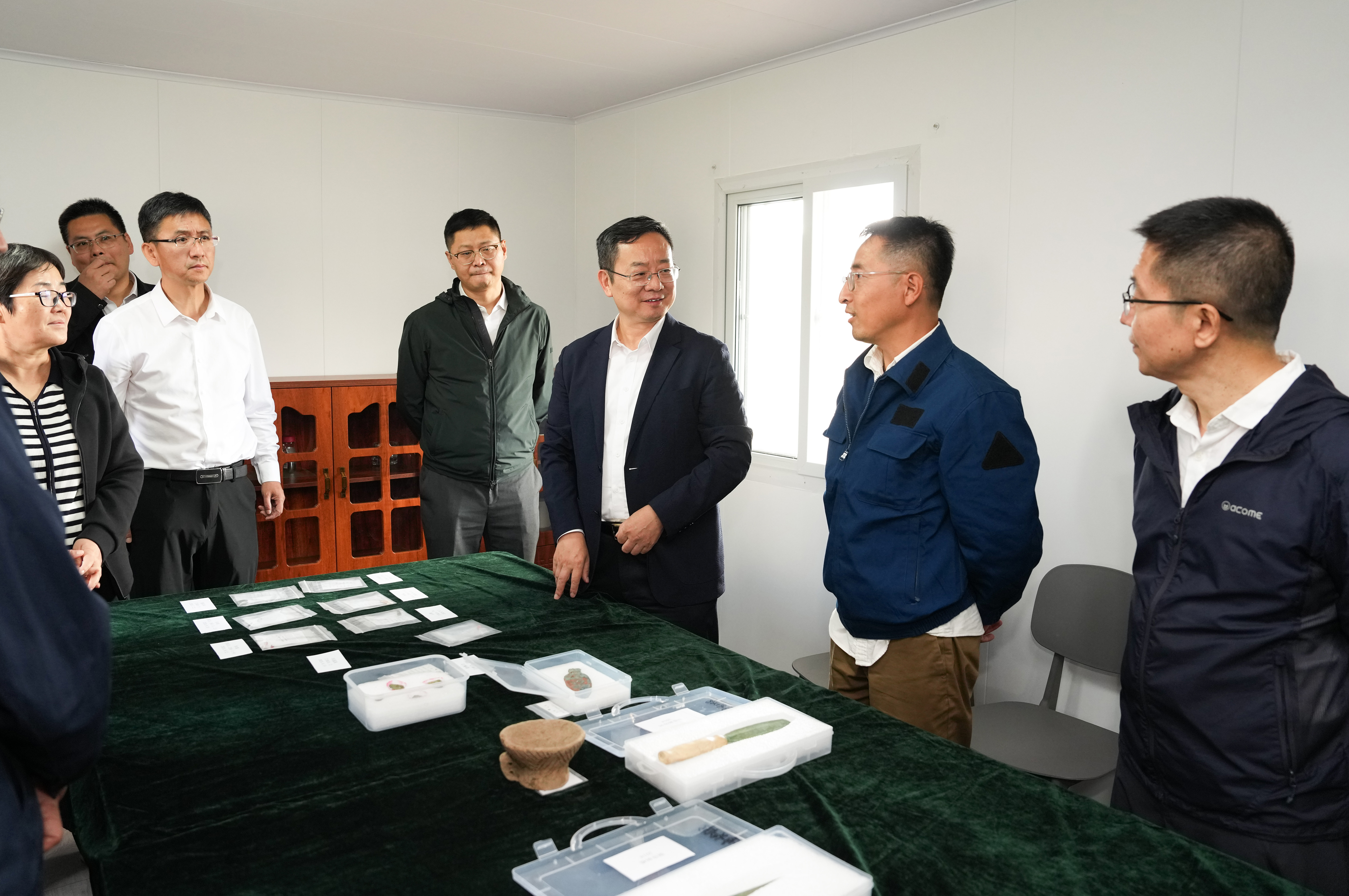 中国社会科学院院长、党组书记高翔听取考古队工作汇报。本网记者王宙/摄
